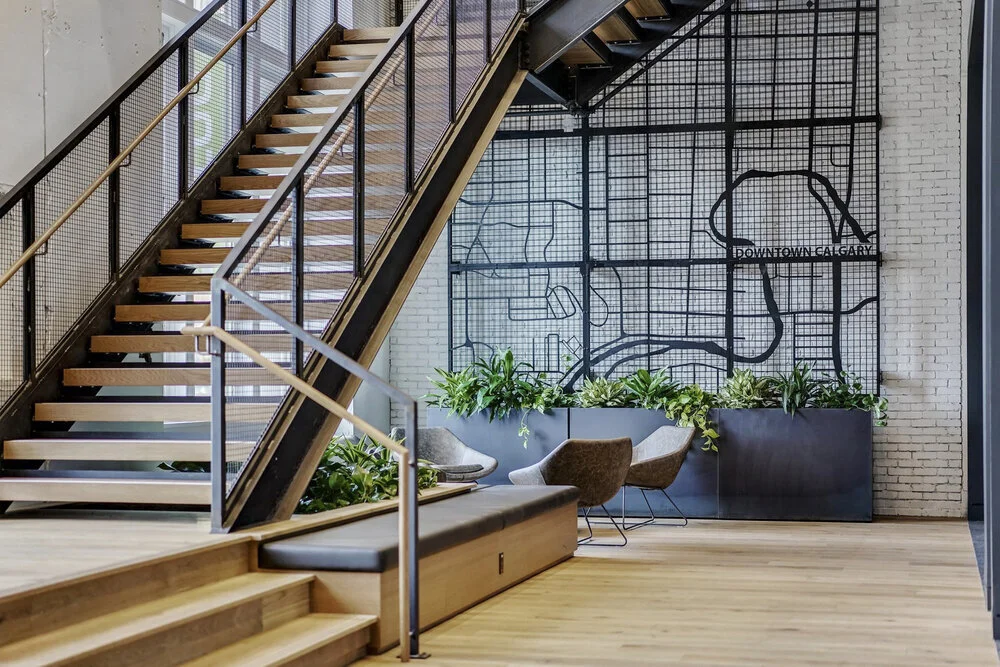 The 22,000-square-foot space on 1st Street and 11th Avenue SE in Calgary, formerly home to the Cantos Music Foundation, required remediation without disturbing the upstairs tenant. We rebuilt this vacant, demolished two-level interior space into a beautiful, exciting office space.